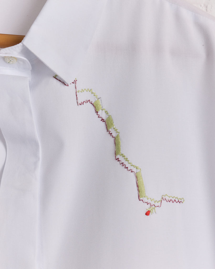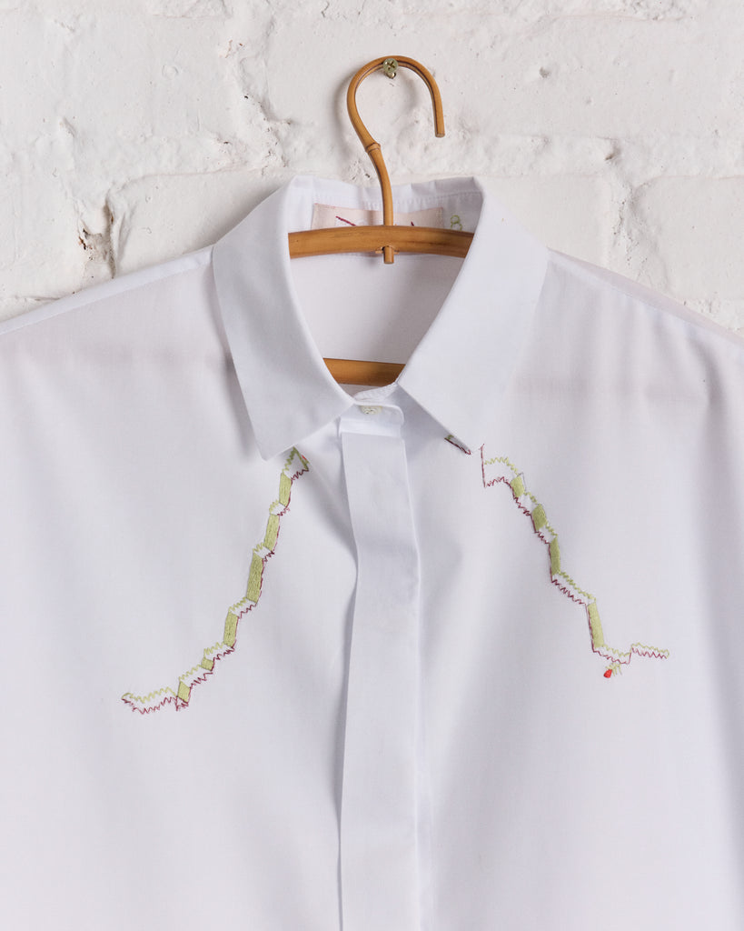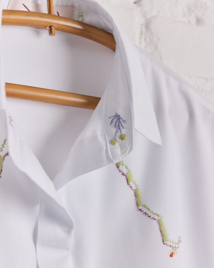 PARTE FRONTAL, BARRA DAS COSTAS E INTERNO DA GOLA COM BORDADO