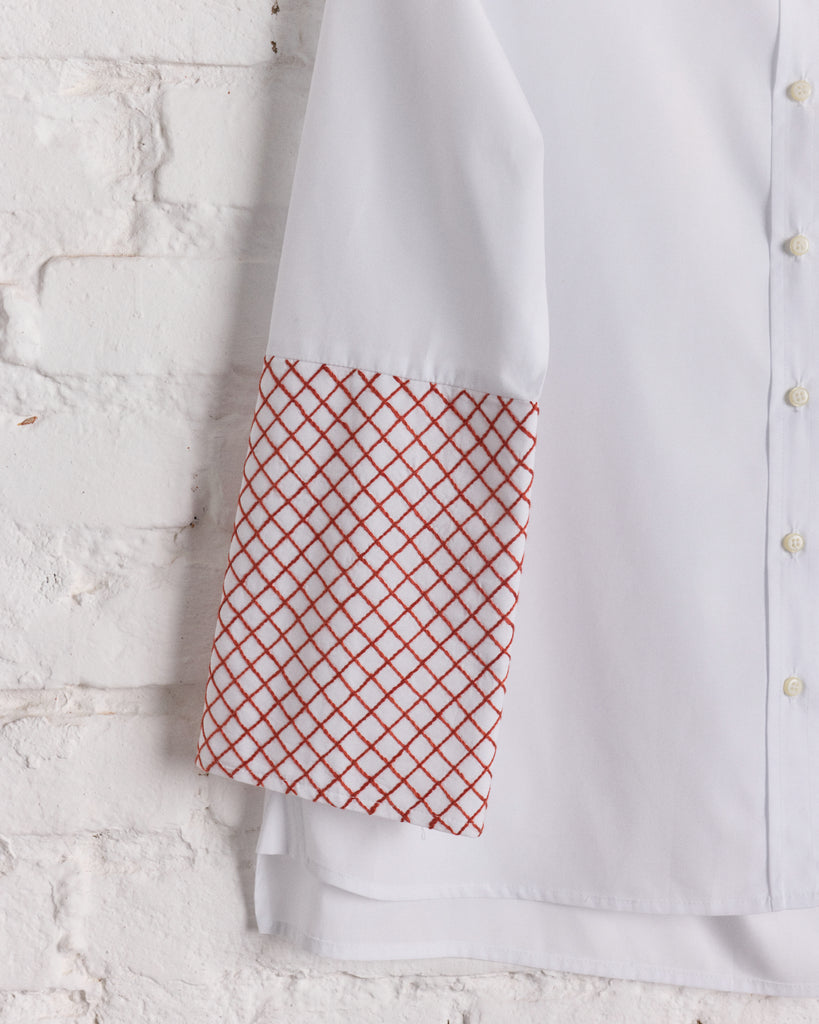 Camisa manga longa, modelagem ampla e punhos grandes.